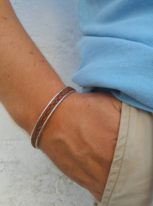 צמיד כסף ועור לגבר מסאי
