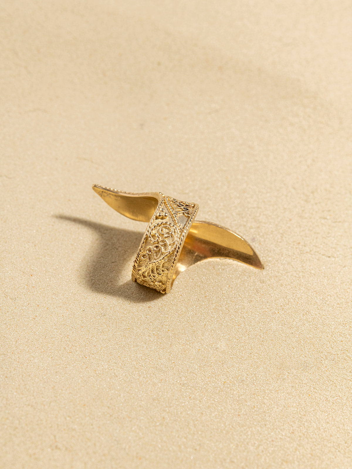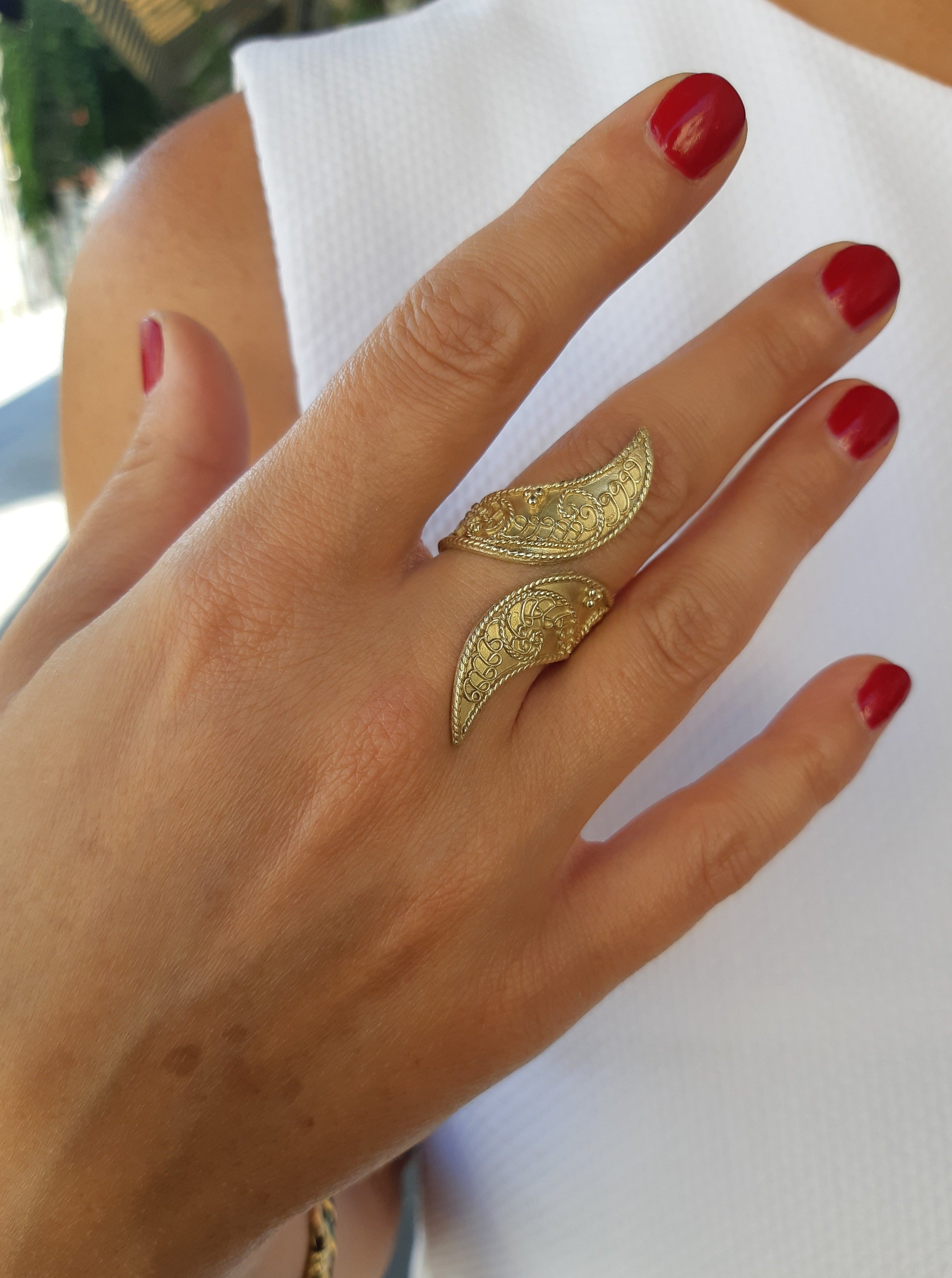 הטבעת עוטפת את האצבע בתנועת גל , וממש 'מלבישה' את היד.