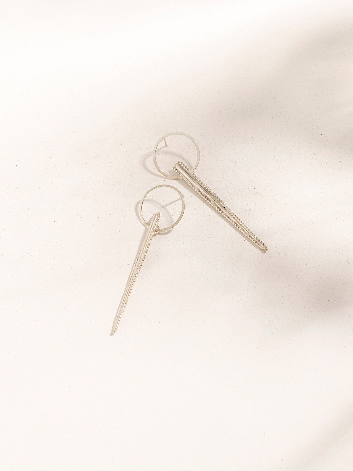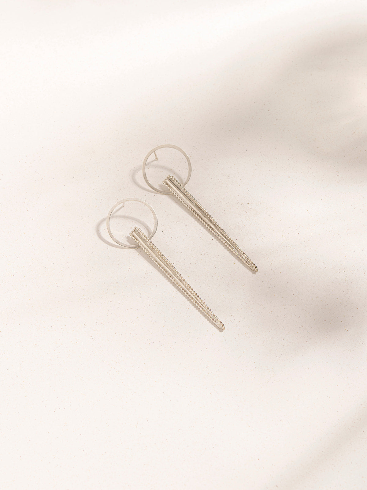 עגילים בדמות חנית התלויים מתוך חישוק הצמוד לאוזן ונעים עליו בחופשיות.