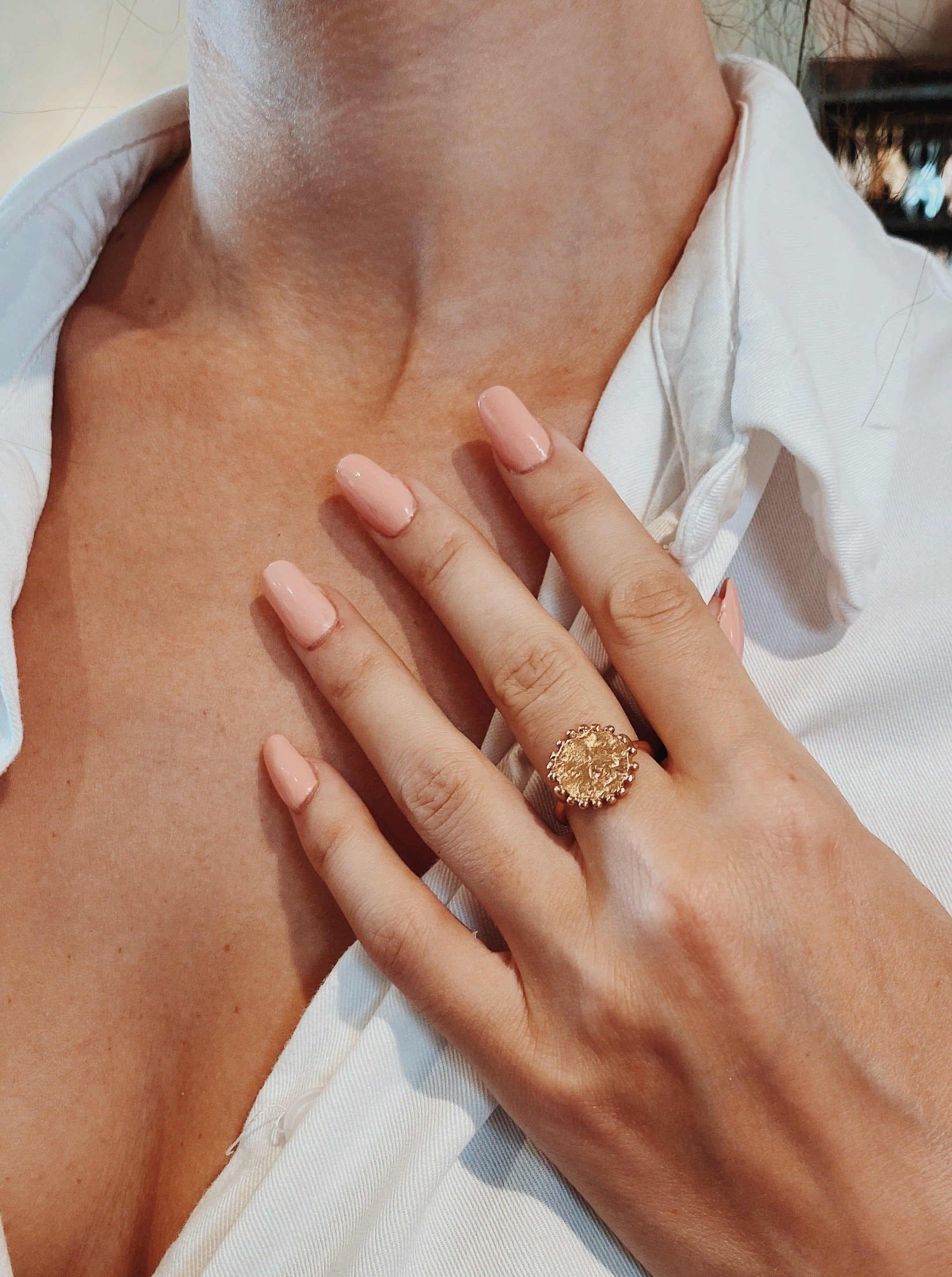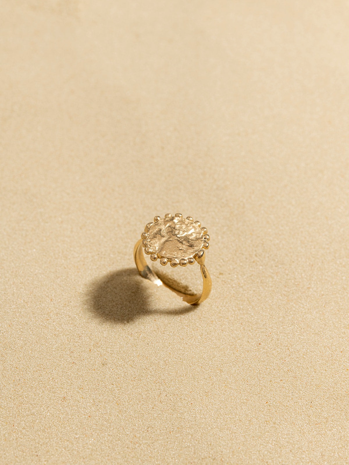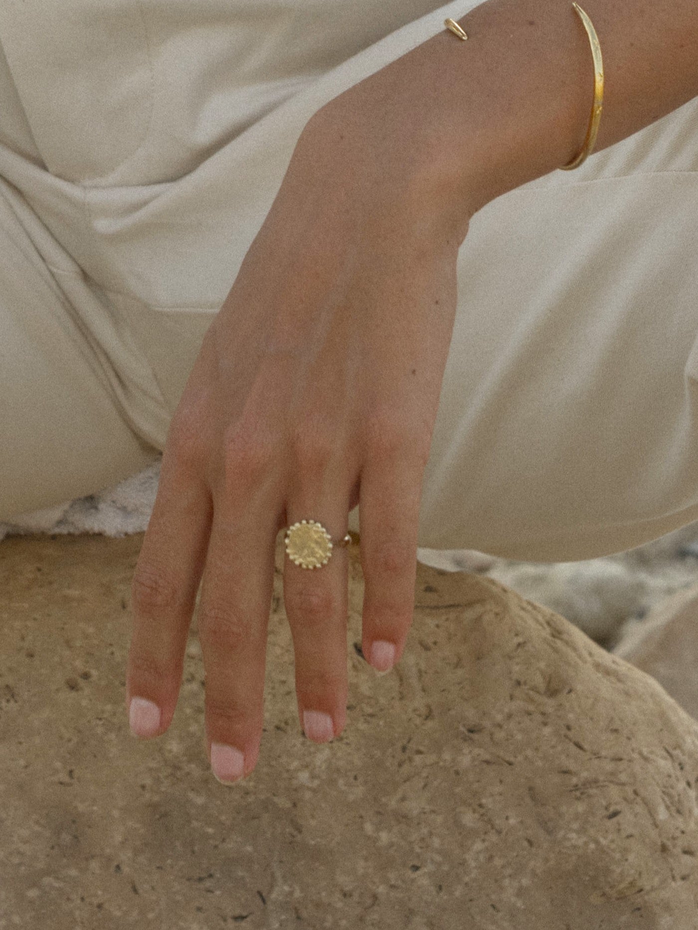 It is a bold and beautiful sun signet ring that will brighten up your outfit and upgrade it with bling and style.