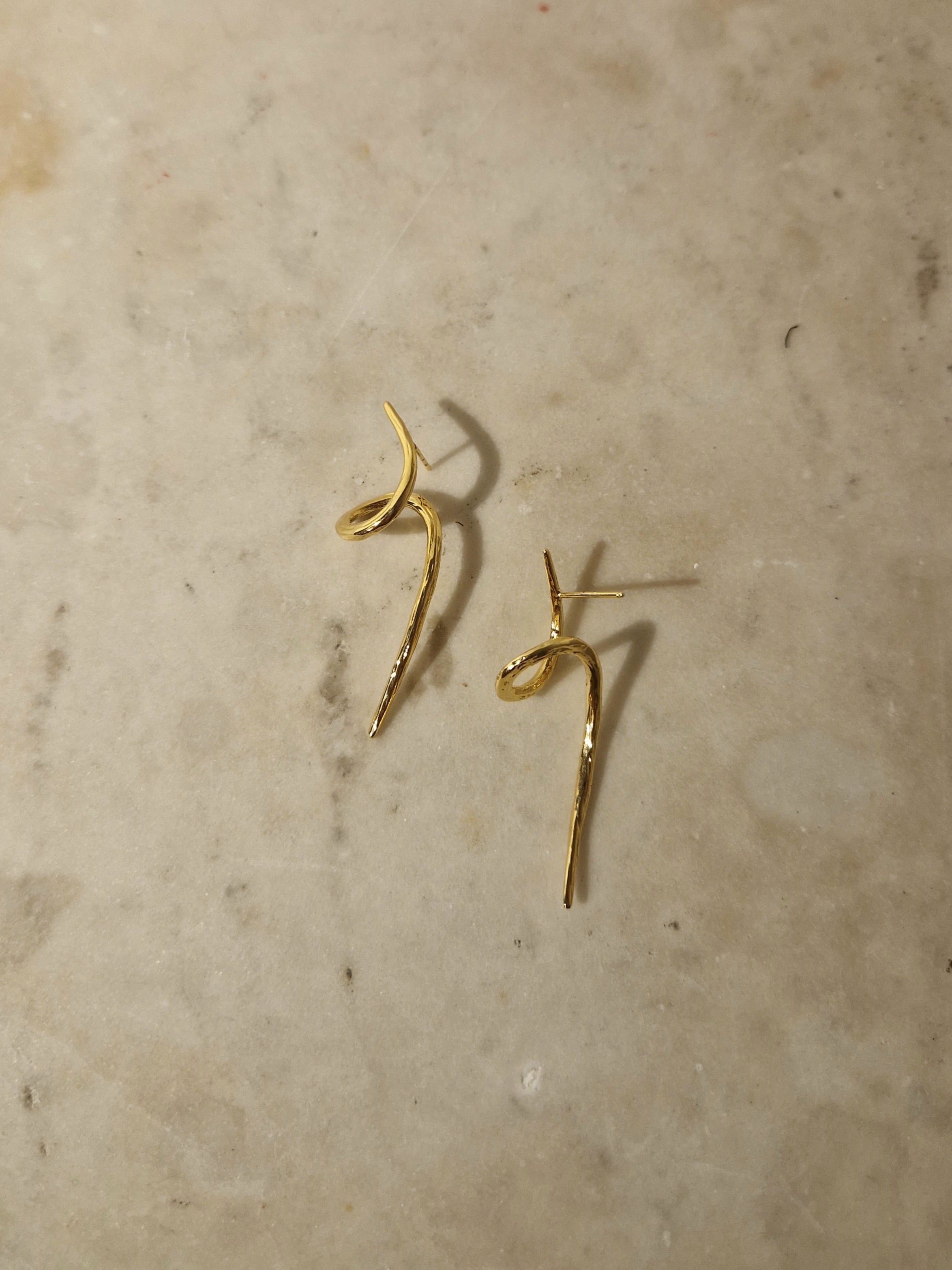 Inspired by the organic patterns found in nature, these twisted earrings celebrate the raw beauty of intertwined forms. Each piece features a graceful spiral design that echoes the way roots wind through earth, creating movement and depth.