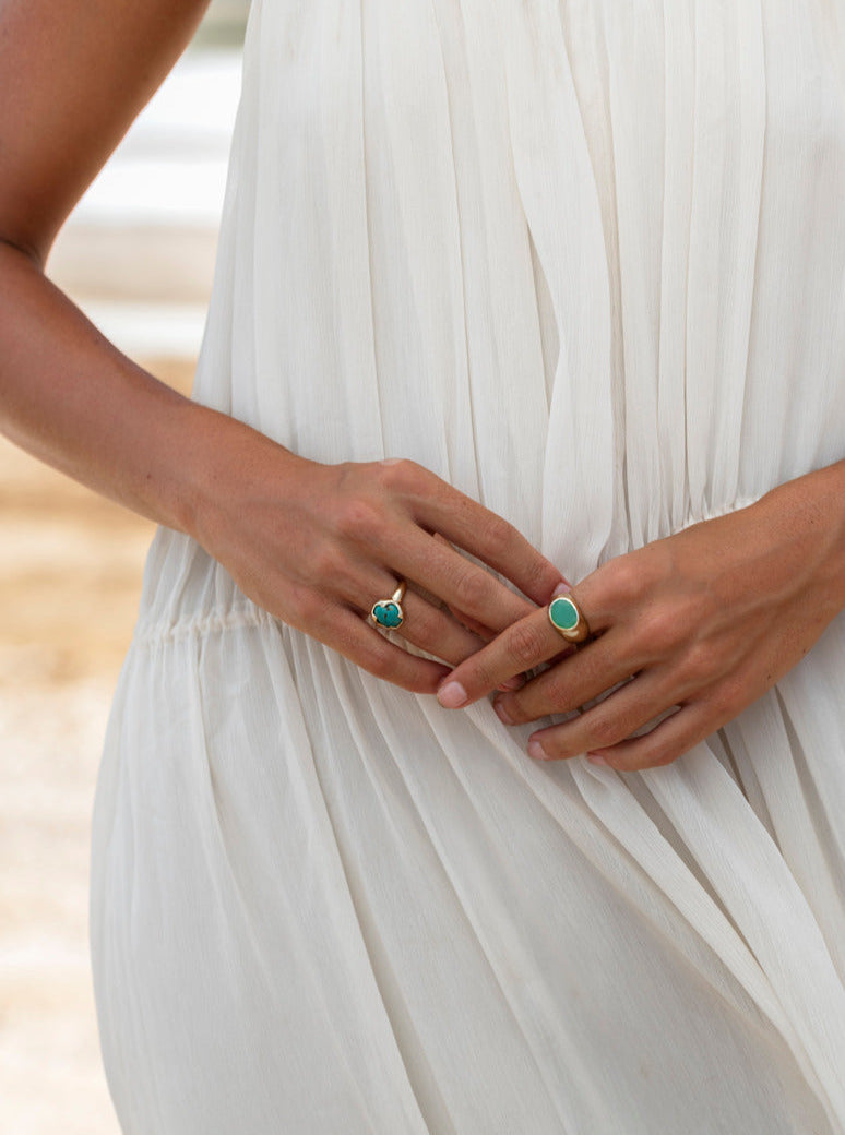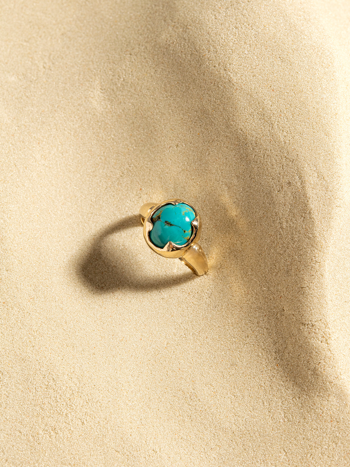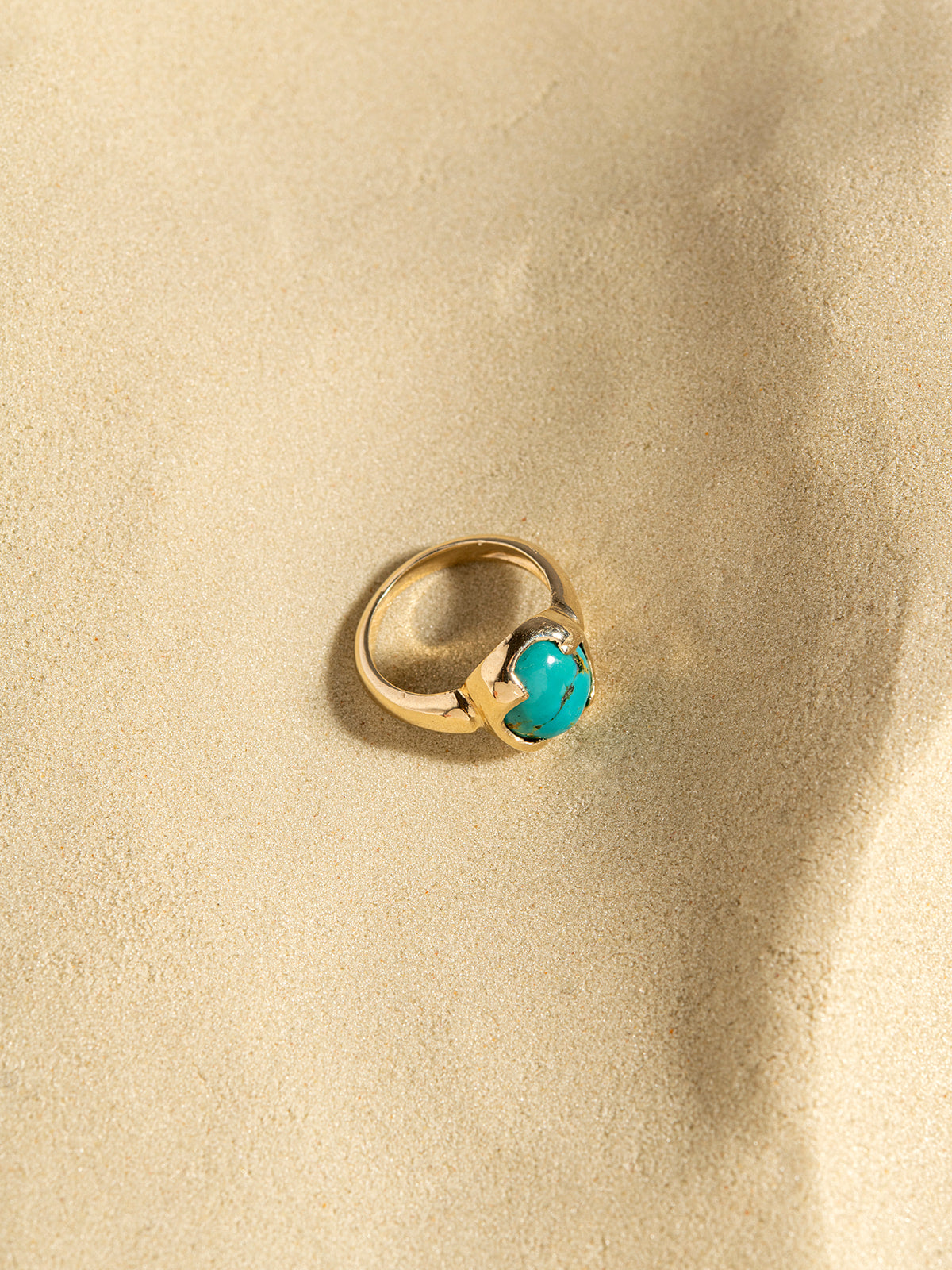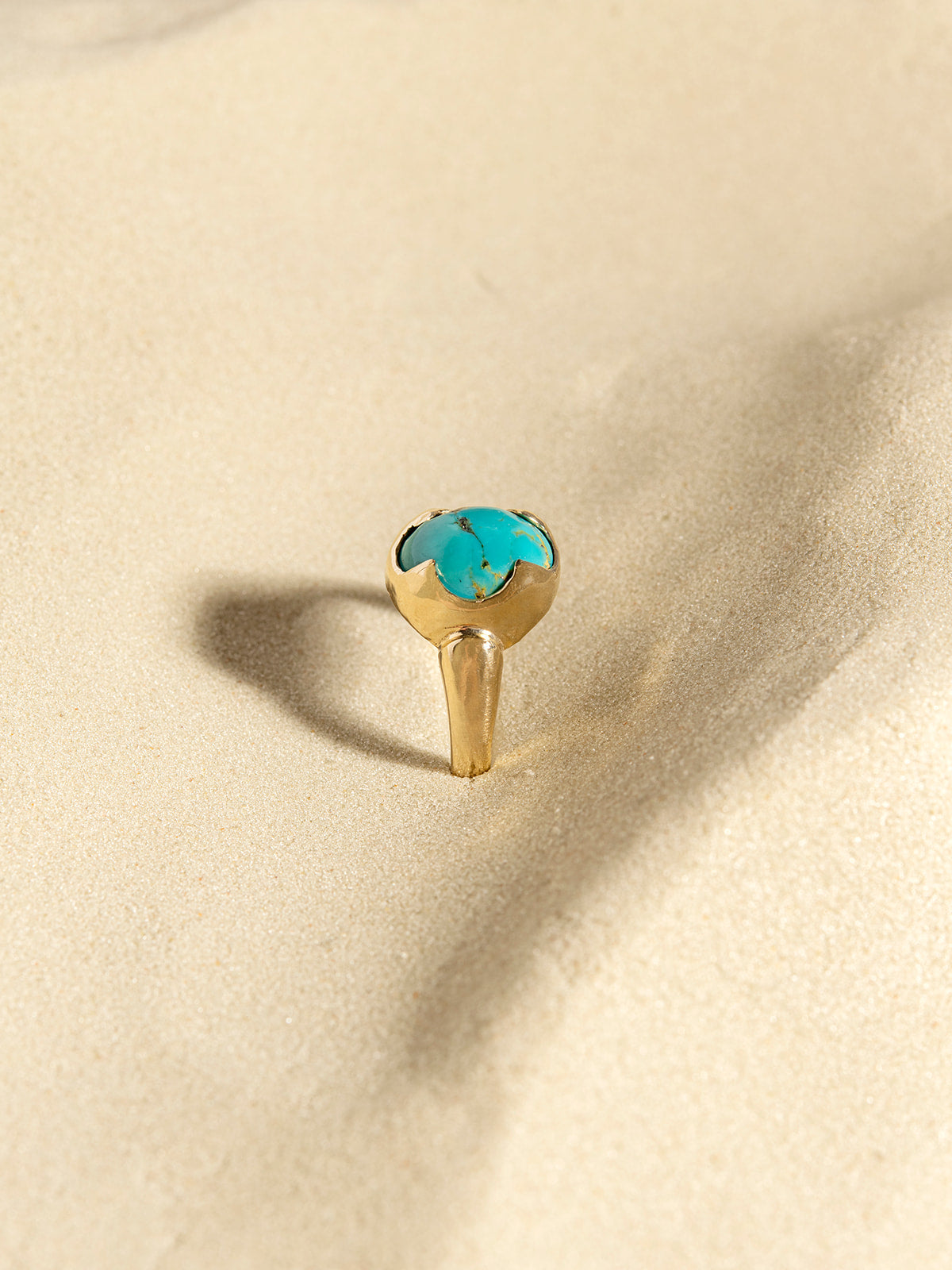 It is made of solid 14k gold and set with a one-of-a-kind real Turquoise.